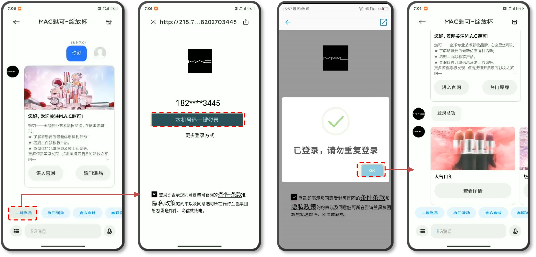 例如在Mac魅可的5G消息案例中,基于5G消息的多媒体卡片式呈现、会话式交互、安全可靠等特点和优势,打造出“荐+++服”电商全流程、智能化服务。顺利获得5G消息窗口便可实现优惠下发、活动宣传、一键下单、精准推送、会员关怀等特色应用,帮助魅可打造线上会员运营的新渠道,成为魅可活动推广、消息通知的新兴品牌触点,勾勒出了消息即服务,服务即营销的完整轨迹线。