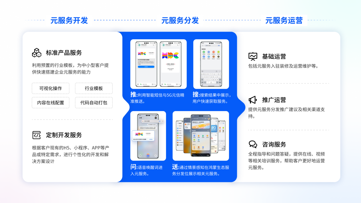 当前,凯发K8科技拥抱鸿蒙生态,已设立鸿蒙生态事业部,作为鸿蒙开发服务商,具备元服务开发、分发、运营的能力,5G元信正是元服务分发体系中重要且独特的方式。其融合华为终端强大的标签体系及全行业全场景的富媒体智能消息样式,帮助企业实现对用户群体的精细化营销有助于业务新增长。