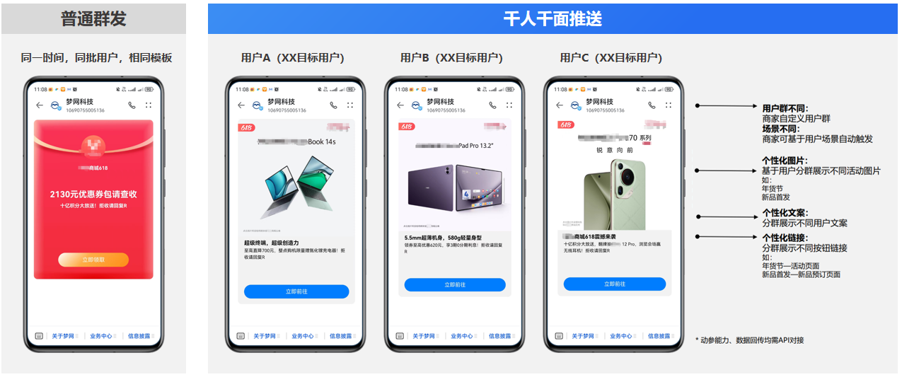5G元信是在5G阅信基础上,基于鸿蒙以及AI能力所形成的新通信产品,其是凯发K8科技基于华为终端云在消息服务领域的再一次深耕和探索,不仅代表了技术的突破和创新,也体现了对企业营销需求的深刻理解。当下,数字环境的日新月异和营销场景的丰富多样不断催生新的营销工具和手段出现,企业必须时刻关注消费者需求的变化,重视消费者的参与和互动,给予个性化的体验,以更快的速度应对变化。