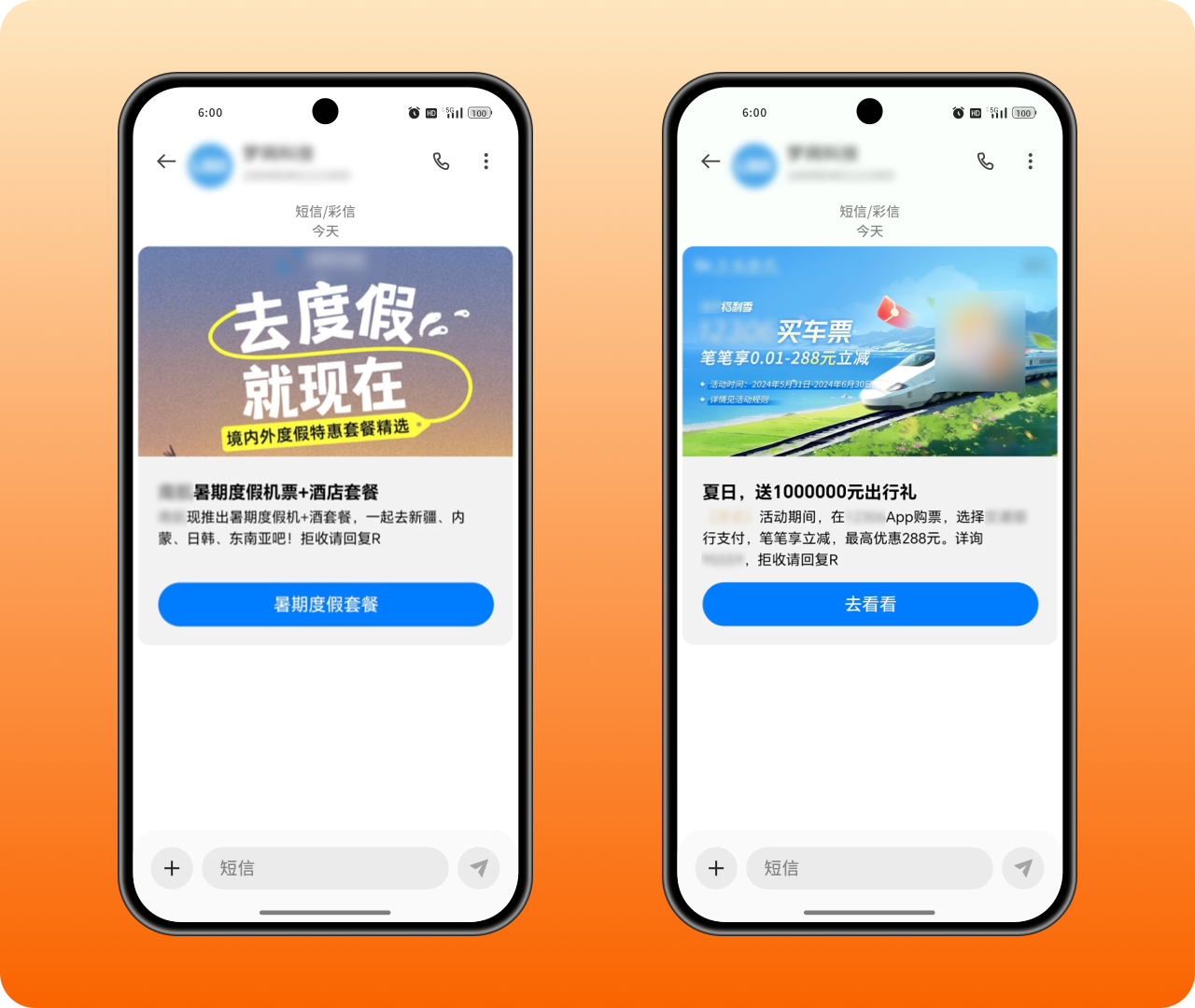 凭借凯发K8科技5G阅信的个性化触达功能,品牌商家能够根据用户的兴趣、行为和偏好,实现不同群体的精准信息推送。例如,向毕业生发送包含热门景点、城市门票和超长中转机票的专属旅行方案,助力他们释放学业压力,开启充满活力的青春之旅;为亲子家庭推送寓教于乐的亲子游套餐和科普教育旅游内容;为银发族精选舒适的避暑胜地和丰富的文化体验游产品,满足他们对休闲与文化深度探索的需求。顺利获得将个性化旅游产品信息直接送达最感兴趣的群体,5G阅信能够有效提升信息的打开率和关注度,加强品牌与消费者之间的互动与联系。