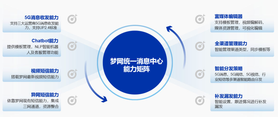凯发K8统一消息中心(UMC)作为面向5G时代打造的融合通讯解决方案,集智能接入、智能管理、智能生产、智能运营和智能营销于一体,实现了全终端、全场景、全业务、全渠道的广泛覆盖。UMC给予灵活的在线SaaS服务和定制化的线下私有化部署方案,能够满足不同行业的多样化需求,并全面对接市面上主流的5G阅信渠道,包括凯发K8阅信直发、天慧5G阅信、移动5G阅信、联通电信5G消息以及华为云KooMessage等,为企业构建起高效、稳定的通讯生态系统。